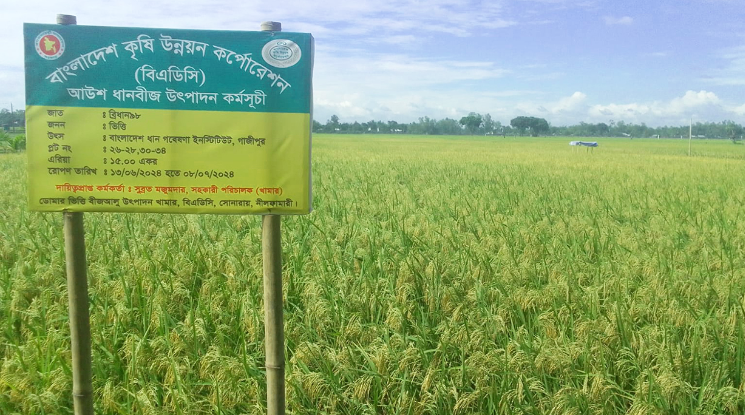 নীলফামারীতে বাংলাদেশ কৃষি উন্নয়ন কর্পোরেশনের (বিএডিসি) ডোমার ভিত্তি বীজআলু উৎপাদনের খামারের পতিত জমিতে উৎপাদন হয়েছে আউশ ধানের বীজ। শুধু বীজআলু উৎপাদনের ওই খামারটি ৩০০ একর জমিতে আবাদ করেছে আউশ ধান। যা থেকে ৪০০ টন ভিত্তি ধান বীজ উৎপাদনের আশা করছেন কর্তৃপক্ষ। সংশ্লিষ্টরা বলছেন, ওই পরিমাণ বীজ দিয়ে আউশ আবাদ করা যাবে ৪০ হাজার একর জমি। এ ছাড়াও অবীজ ধান পাওয়া যাবে ৬০ থেকে ৭০ টন। যার বাজার মূল্য ২ কোটি টাকার ওপরে।