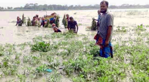 গাইবান্ধায় বন্যার পানিতে প্রতি দিন নিমজ্জিত হচ্ছে নতুন নতুন ফসলের ক্ষেত। বর্ষালি আউষ, রোপা আমন ও আমন বীজ তলা,সবজি সহ এসব নানা ফসল দির্ঘ দিন